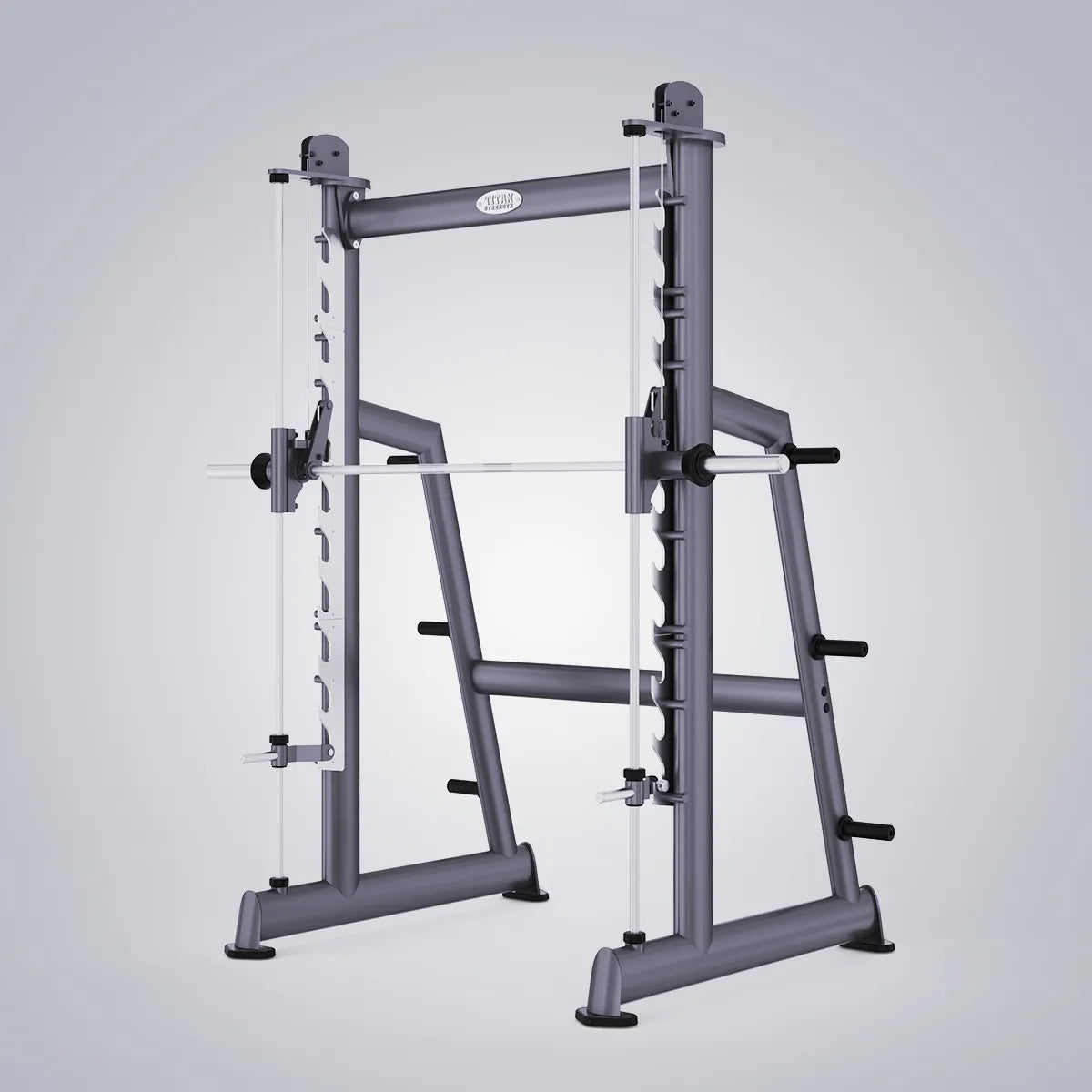 - Особливості конструкції: Прямолінійна фіксована траєкторія, система фіксації грифа, хромований гриф, вбудовані дискотримачі, посилена рама.