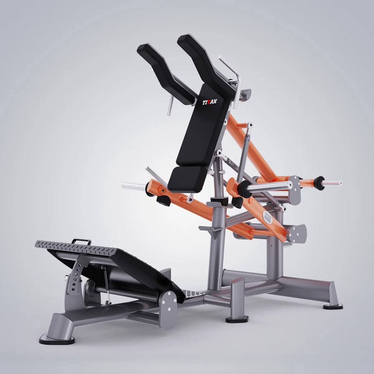Тренажер для присідань T911 лінії DHZ TITAN Xtreme призначений для комплексного тренування м’язів ніг, зокрема квадрицепсів, підколінних сухожиль і сідничних м’язів. Завдяки спеціальній прогресивній важільній системі тренажер формує фізіологічну криву навантаження, що дозволяє підтримувати стабільне напруження м’язів протягом усього руху.