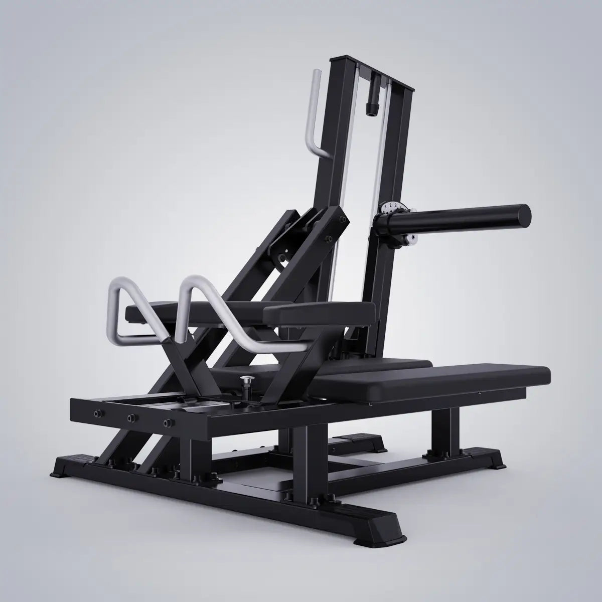 Сідничний тренажер DHZ A619 для ізольованого опрацювання сідниць через відведення ноги назад у положенні упору на колінах створений для комплексного опрацювання сідничних м’язів, квадрицепсів та задньої поверхні стегна. Тренажер оснащений регульованою системою, що дозволяє обирати три різні кути виконання вправи, забезпечуючи точкову активацію потрібних ділянок та високу варіативність тренувань. М’які упори для ліктів і горизонтально регульовані ручки гарантують комфорт і стабільність, а продумана конструкція забезпечує ідеальне вирівнювання робочої ноги для максимально ефективного поштовху.