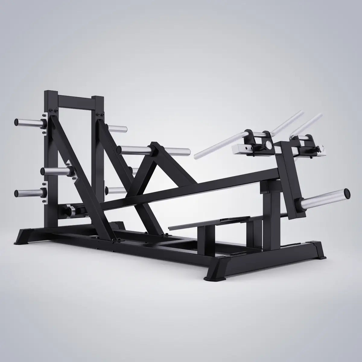 Тренажер Т-подібна тяга (з упором на ноги) A617 створений для потужного та ефективного опрацювання м’язів спини — з чіткою траєкторією руху та високою варіативністю навантаження. Нахилена платформа для стоп забезпечує стійке положення тіла під час інтенсивної тяги, а регульована ширина рукояток дозволяє підібрати оптимальну позицію під будь-яку антропометрію. Кожна рукоять має три різні варіанти хвату, що дає змогу зміщувати акценти та комплексно опрацьовувати різні сегменти м’язів.