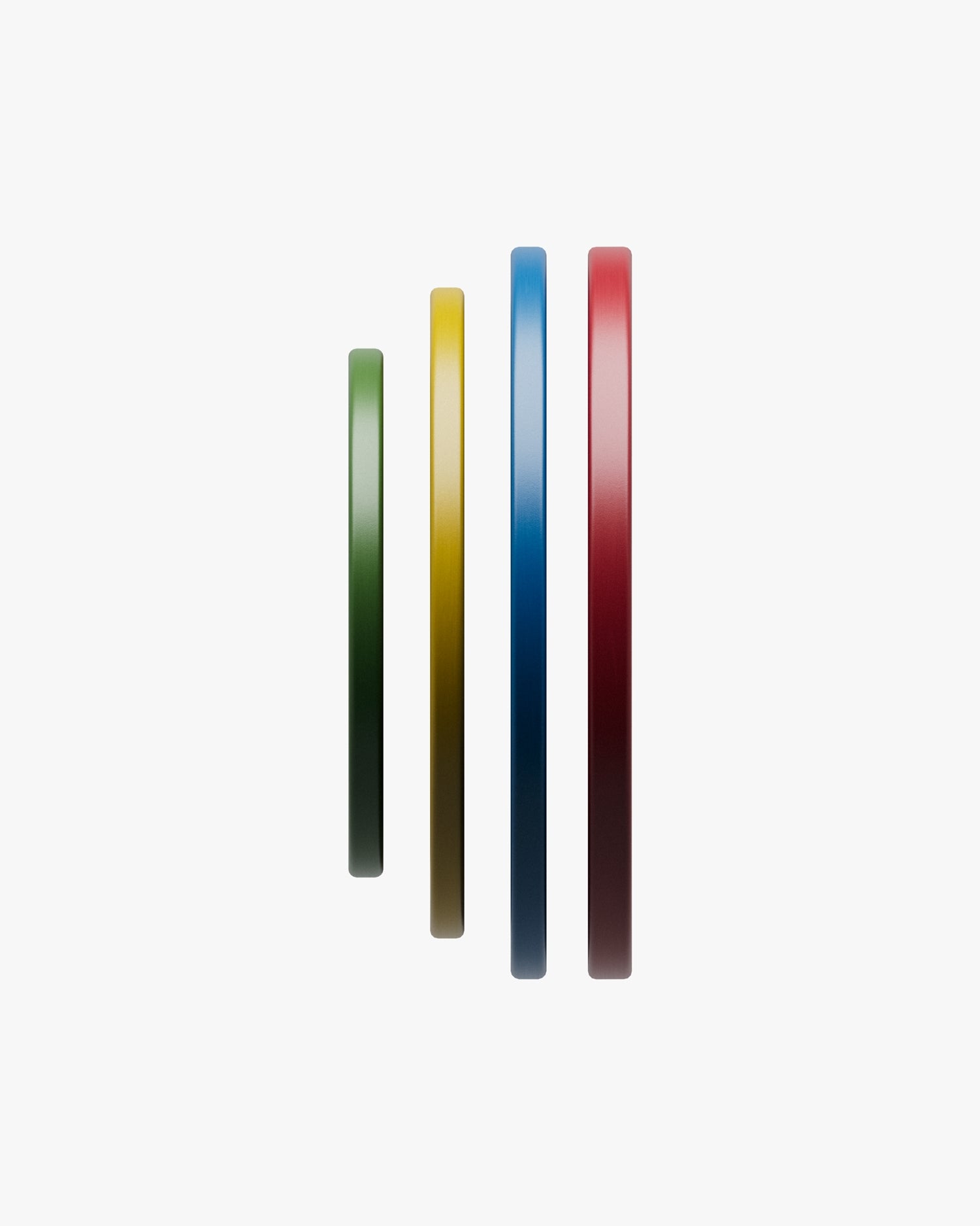 Змагальні диски отримали оновлений дизайн із гладкою скошеною крайкою, що робить хват більш надійним і комфортним. Нова форма також має ергономічний жолобок для пальців на зворотному боці диска. У сукупності ці елементи конструкції значно покращують досвід атлетів та асистентів під час тренувань і змагань.