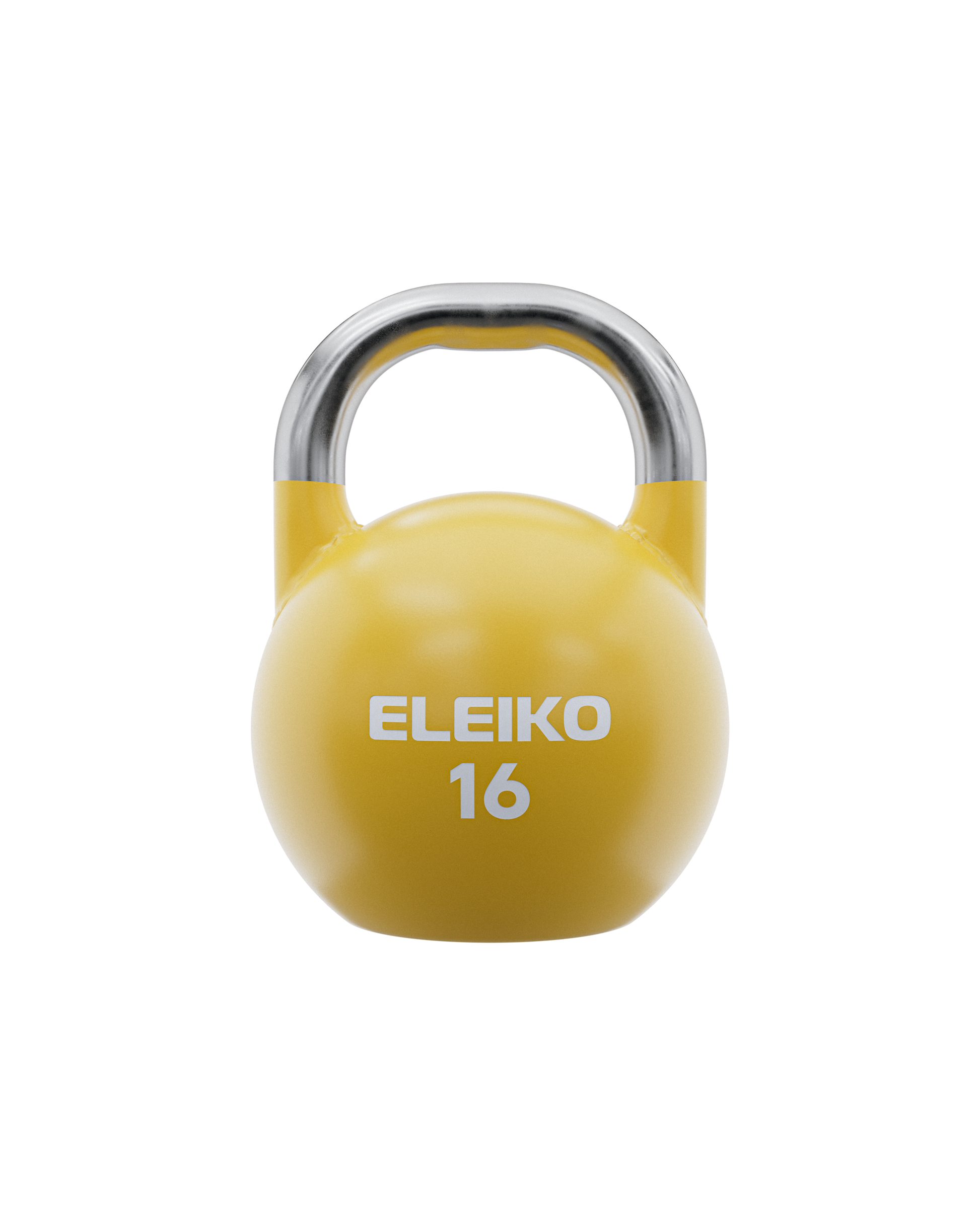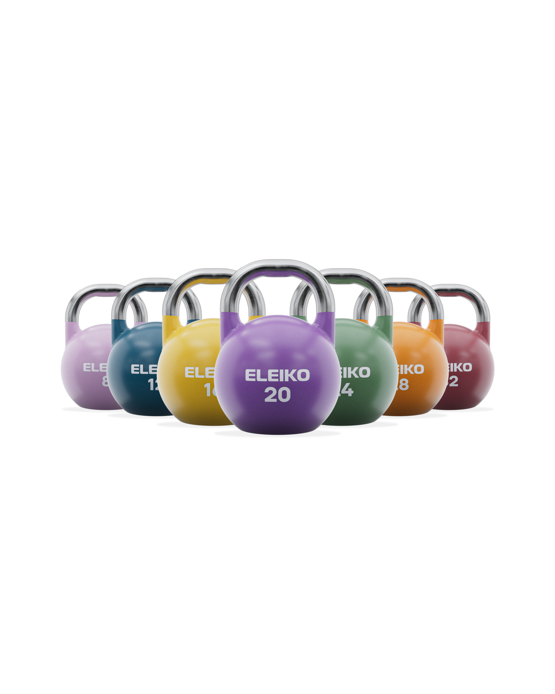 Змагальні гирі Eleiko виготовляються з високоякісного заліза, мають литу конструкцію та порошкове покриття, що забезпечує виняткову довговічність. Вони ретельно калібровані для змагального використання й мають стандартний розмір, що сприяє стабільній техніці підйому, а кольорове маркування полегшує ідентифікацію ваги.