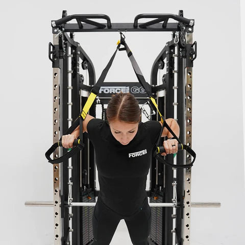 З Force USA G6 ви можете повністю контролювати хід свого заняття. Перехід від пауерліфтингу до вправ із тросами чи від тренування верхньої частини тіла до нижньої відбувається за лічені секунди.
