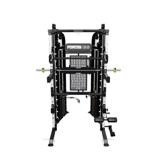 Машина Сміта у G6 розташована під кутом, що відповідає природній біомеханіці рухів. Вона вирізняється плавністю ходу, витримує навантаження до 350 кг і чудово підходить для багатосуглобових вправ — жиму над головою, підйомів на ікри та вправ для розвитку сідничних м’язів.